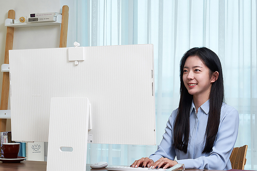 삼성 스마트폰 모니터 M8의 또 다른 특징 중의 하나는 탈부착 가능한 슬림핏 캠을 제공한다는 점입니다. 특히 구글 듀오 기능을 지원해서 재택근무나 원격 회의를 진행할 수 있는 특징이 있습니다.