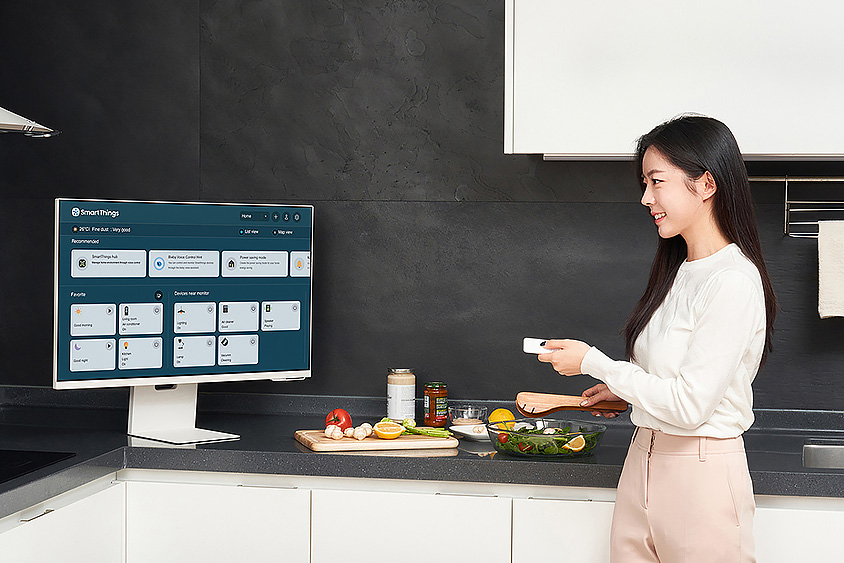 삼성 스마트폰 모니터 M8은 ‘스마트싱스(SmartThings)’ 앱을 이용해서 각종 IoT 제품들을 제어할 수 있다고 합니다. 특히 곡마도 원거리 음성 인식 마이크가 내장되어 있어서 빅스비를 통해서 음성 명령을 내릴 수 있다는 점이 편리한 부분입니다.