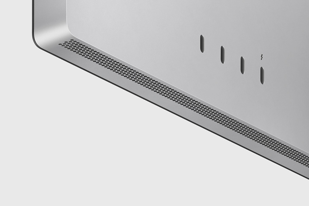 애플 스튜디오 디스플레이는 3개의 USB-C 포트와 1개의 썬더볼트4 포트를 이용해서 아이폰을 충전시켜 주거나 키보드나 마우스와 같은 액세서리들을 연결할 수 있습니다.