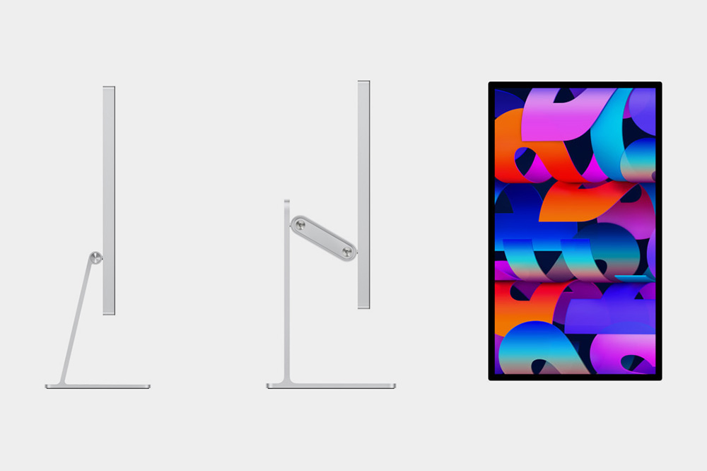 애플 스튜디오 디스플레이에 기본으로 제공되는 기울기 조절 스탠드는 30도까지 조절할 수 있고 옵션으로 제공되는 기울기 및 높이 조절 스탠드는 105mm 범위에서 높이를 조절할 수 있습니다. 그리고 VESA 마운트 어댑터 옵선을 이용해서 모니터 암에 장착할 수도 있습니다.