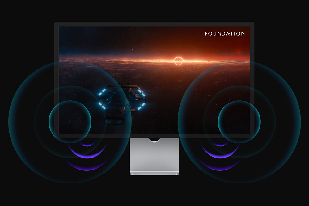 그리고 애플 스튜디오 디스플레이에는 6개의 스피커가 탑재되어서 극장 같은 사운드를 제공하고 스튜디오급 3 마이크 어레이를 이용해서 영상 통화나 음성 녹음을 할 수 있습니다.