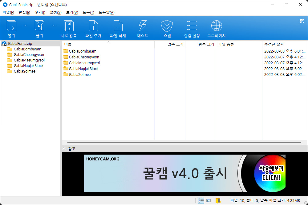 가비아 글꼴 프로젝트의 폰트를 컴퓨터에 설치하는 방법은 간단한 편입니다. GabiaFonts.zip 파일을 다운로드 받은 후에 압축을 해제하고 C:\Windows\Fonts에 복사해서 붙여 넣어주면 됩니다.