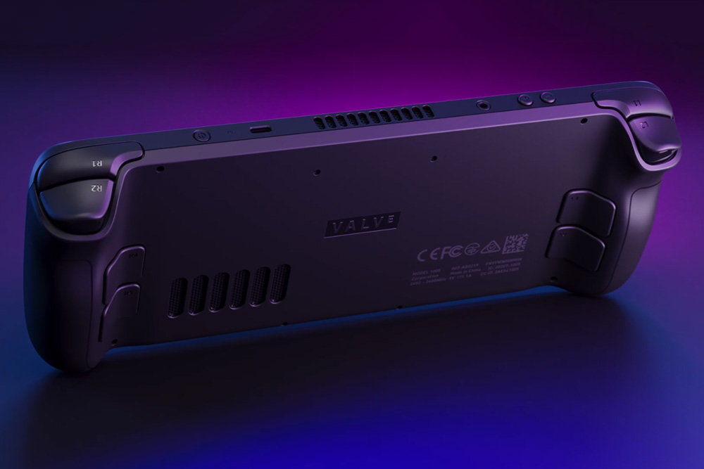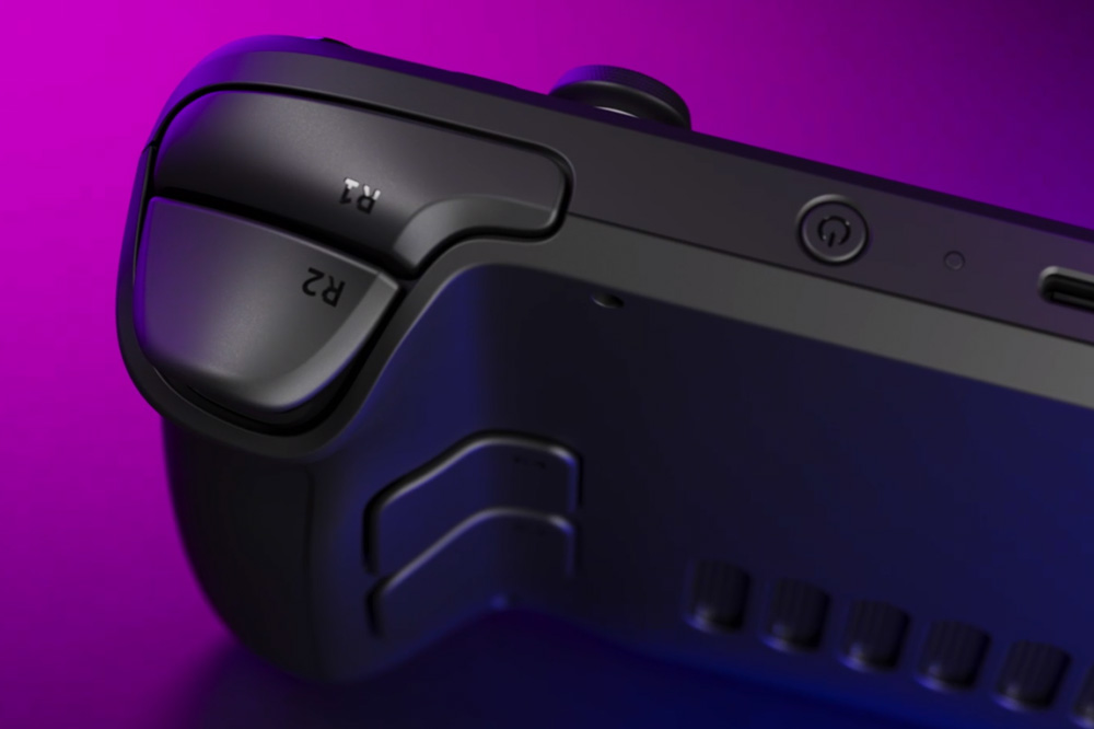 스팀덱(Steam Deck)의 뒷면을 살펴보면 트리거와 그립 버튼이 준비되어 있습니다. 게임을 플레이하기 위해서 상당히 본격적인 모습들을 보여주고 있다는 것을 확인할 수 있습니다.