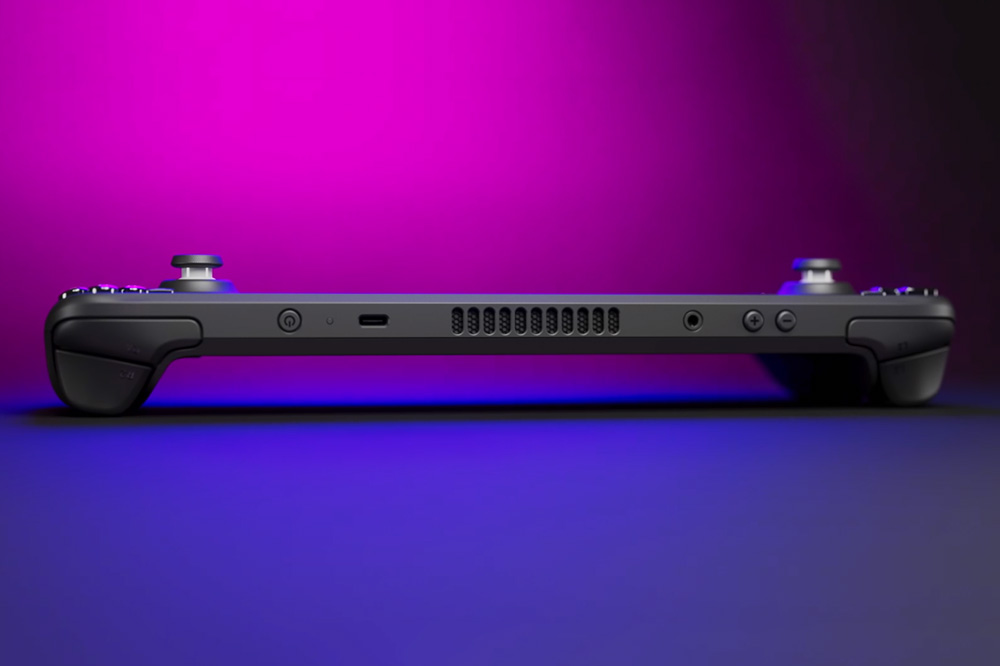 스팀덱(Steam Deck)의 위쪽을 확인해보면 쿨링을 위한 팬이 부착되어 있고 전원과 보륨 그리고 USB-C 포트들이 준비되어 있습니다. 그리고 아래쪽에는 저장공간을 확장하기 위한 마이크로SD카드 슬롯이 내장되어 있습니다.