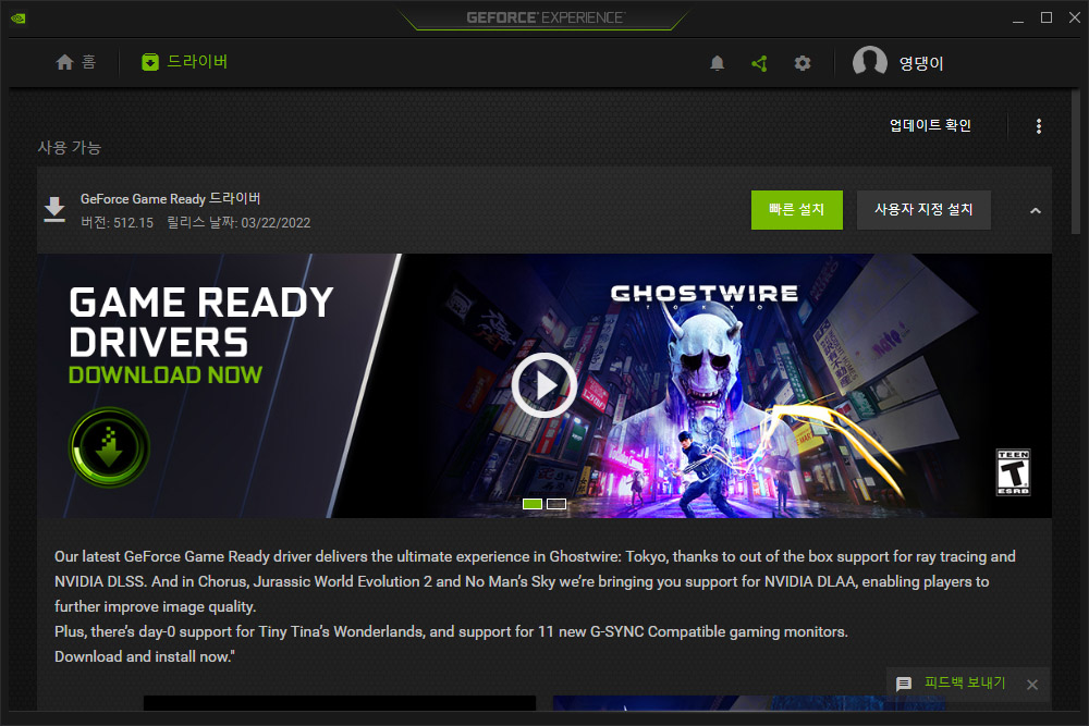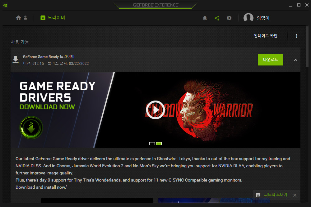 다운로드 : https://www.nvidia.com/ko-kr/geforce/geforce-experience