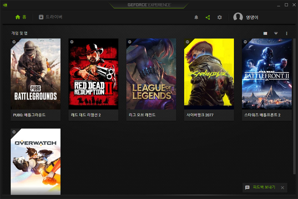 지포스 익스피리언스(GeForce Experience)는 아래의 링크에서 다운로드를 받을 수 있습니다. 그리고 홈 화면을 살펴보면 현재 자신의 컴퓨터에 설치되어 있는 게임들의 리스트가 표시되는 것을 확인할 수 있습니다.