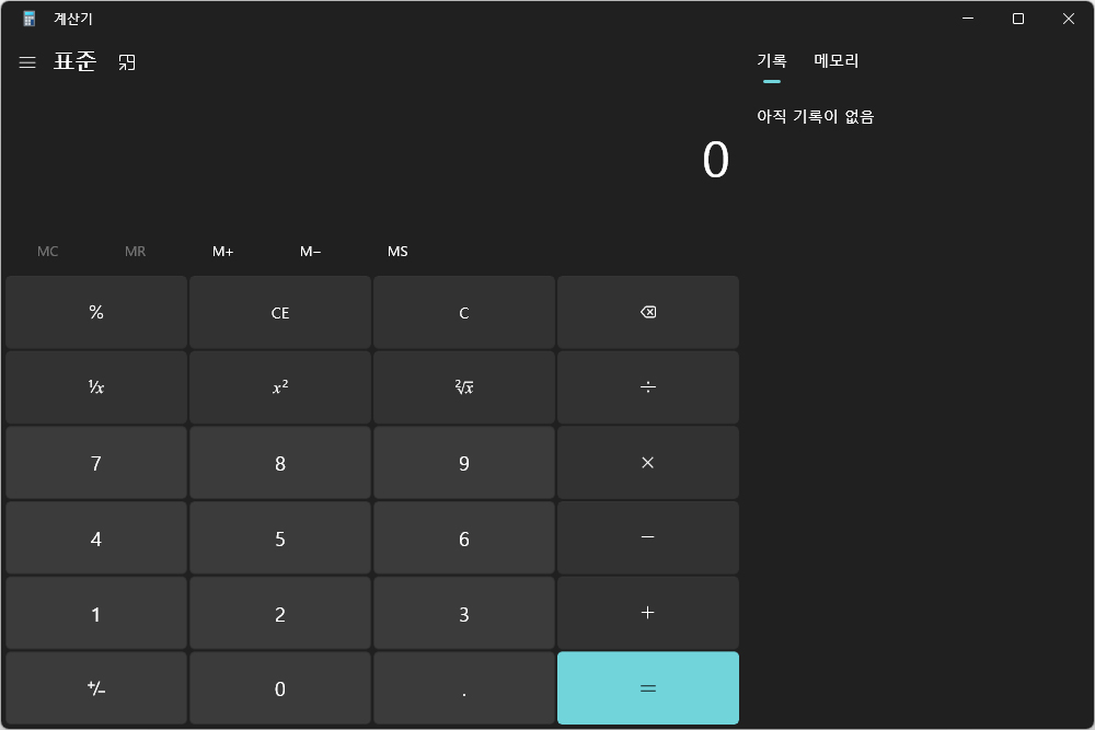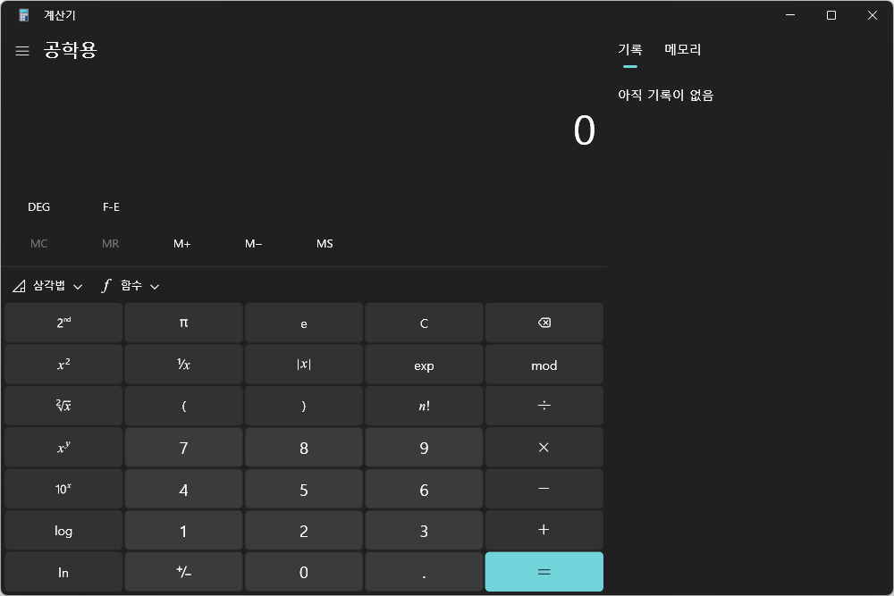 윈도우11에서 계산기라는 이름을 가지고 있고 실제 파일명은 clac.exe입니다. 그리고 표준모드에서는 간단한 사칙연산을 할 수 있고 특정 숫자들을 저장할 수 있는 메모리 기능이나 이전에 계산했던 내용을 확인할 수 있는 기록 기능도 준비되어 있습니다.