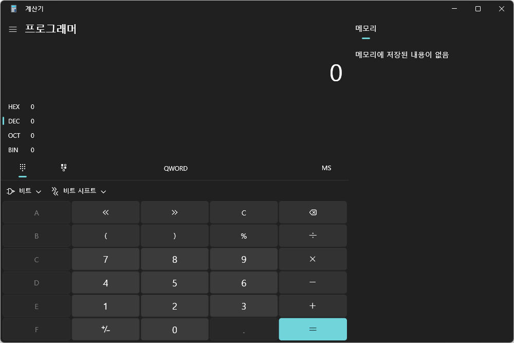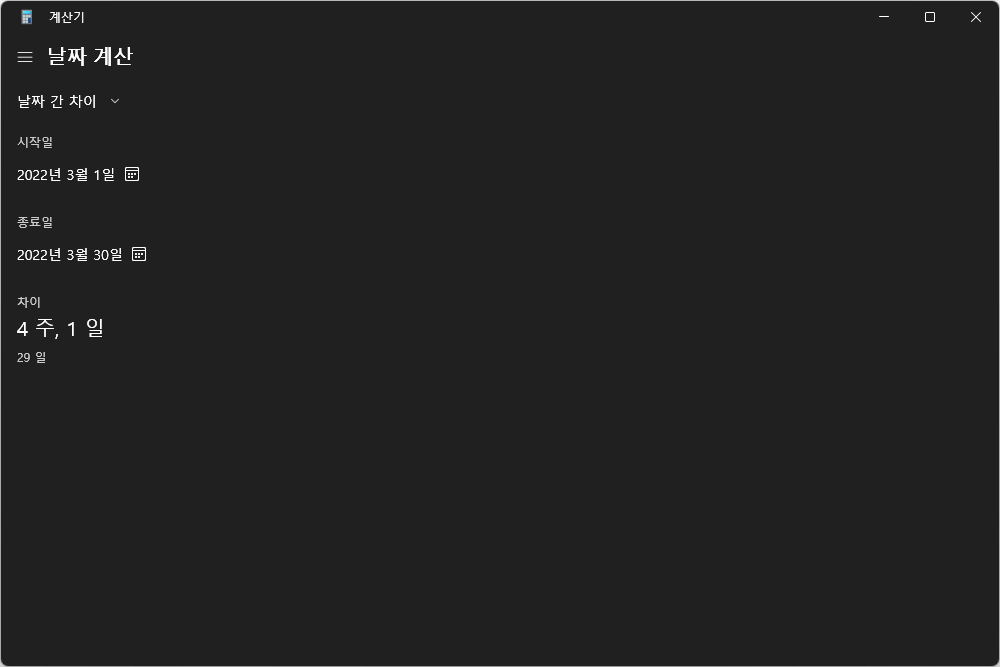 계산기에는 HEX와 DEC, OCT, BIN을 간단하게 계산할 수 있는 기능들이 준비되어 있습니다. 그 외에도 날짜 계산 기능도 준비되어 있는데요. 은근히 활용도가 높은 기능이라고 판단되었습니다.