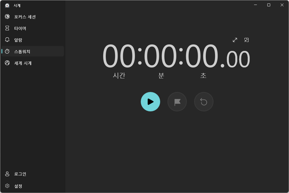 스톱워치 기능은 다른 소프트웨어와 마찬가지로 랩을 체크하거나 초기화할 수 있는 기능들을 지원합니다. 컴퓨터로 작업을 하는 시간 등을 정밀하게 측정하고자 할 때 활용할 수 있습니다.