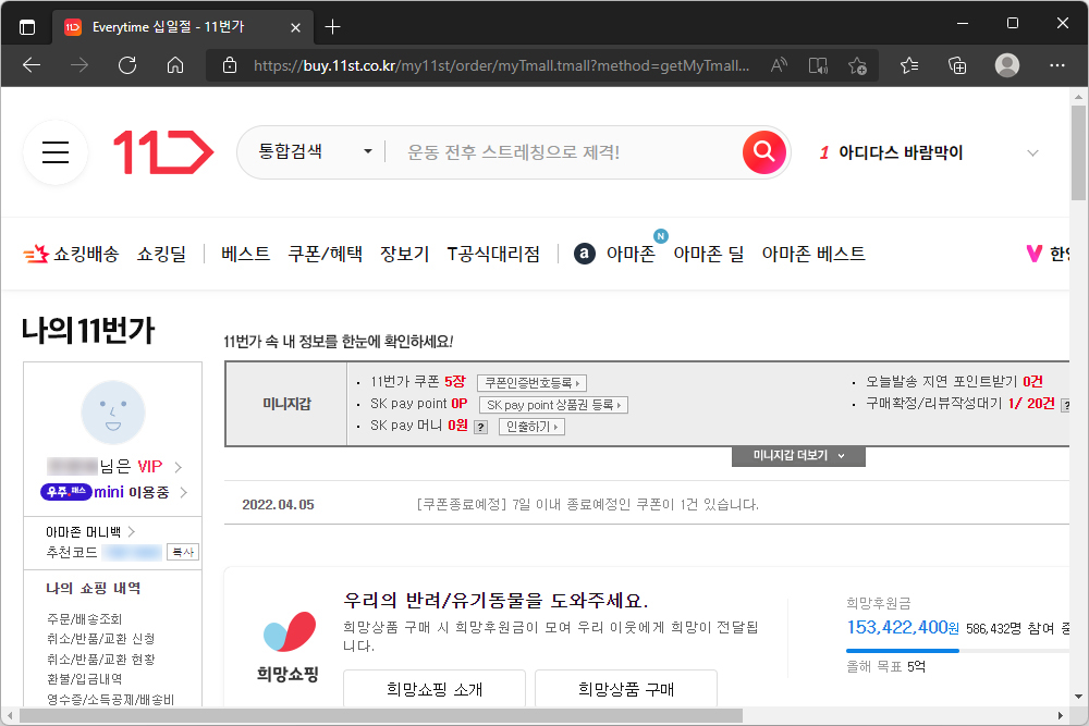 그리고 해지하는 방법을 자세하게 살펴보면 우선 나의 11번가 메뉴를 확인해 보면 우주패스 미니를 이용하고 있다는 내용이 설명된 것을 확인할 수 있습니다. 저의 개인적으로 판단으로는 필요할 때마다 갱신해주는 것을 추천합니다.