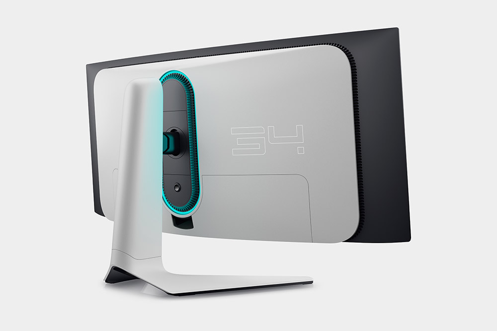 델 에일리언웨어 AW3423DW의 뒷면에는 경기장 지붕 조명과 케이블을 정리할 수 있는 스탠드가 준비되어 있습니다. 디자인적인 측면에서 상당히 깔끔한 느낌을 주는 편입니다. 그렇지만 최근 일부 모니터에서 적용되고 화면에 반응하는 RGB 조명이 탑재되지 않았다는 점은 아쉬운 부분입니다.