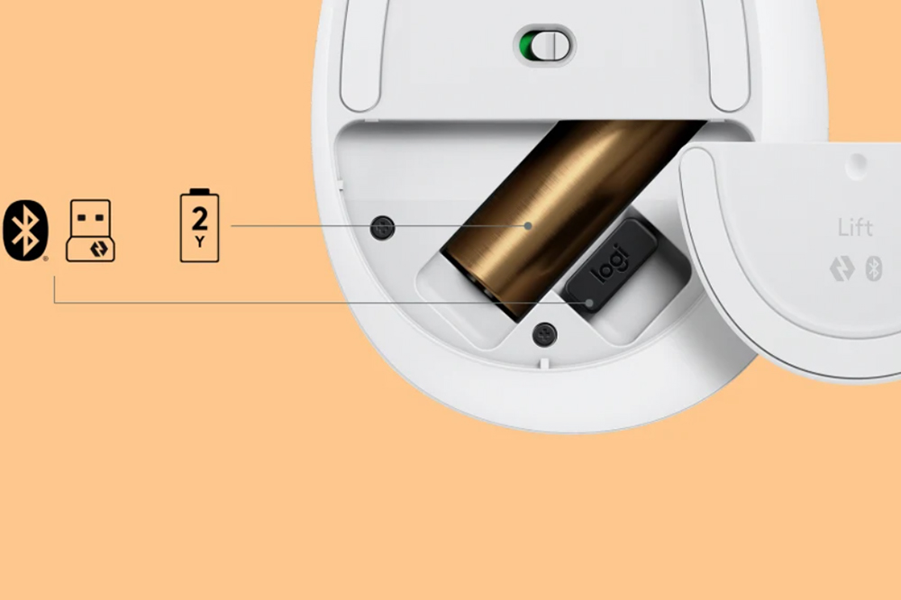 로지텍 LIFT VERTICAL 버티컬 마우스는 블루투스와 최근 로지텍에서 발표한 Bolt(볼트) USB 수신기를 이용해서 동작시켜줄 수 있습니다. 그리고 하나의 AA 사이즈 배터리로 최대 2년 정도 사용할 수 있다고 합니다. 게이밍 마우스와는 다르게 사용 시간이 상당히 긴 편입니다.