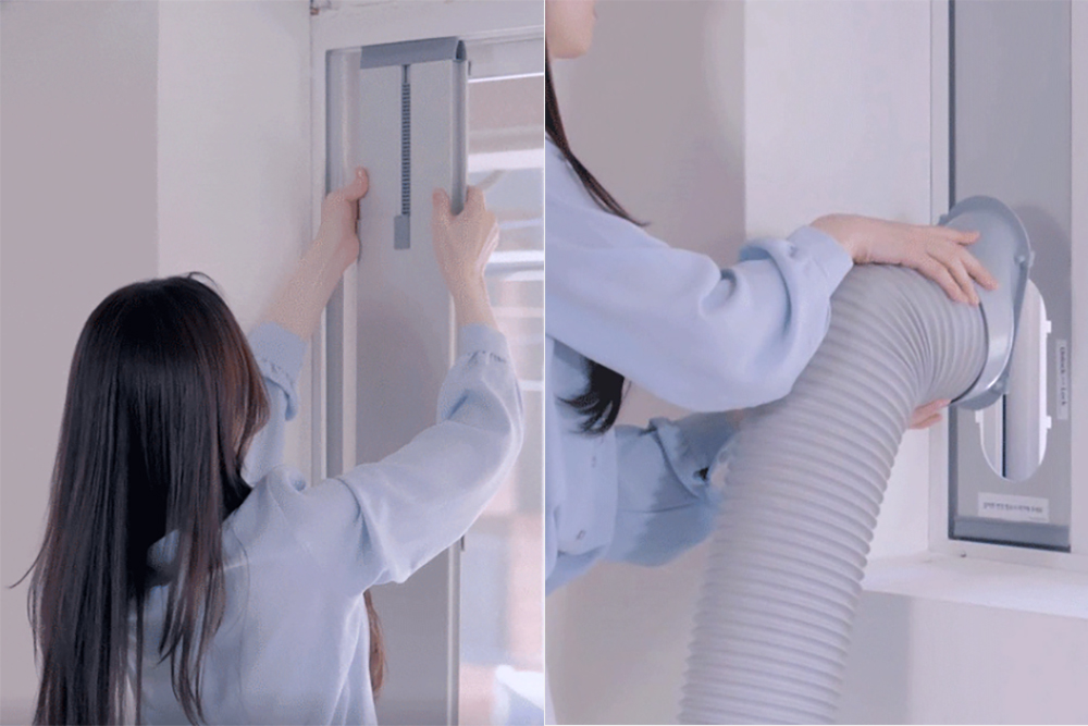 LG 휘센 이동식 에어컨 PQ08DCWAS는 창문에 설치판과 배기 호스를 이용해서 설치를 할 수 있습니다. 크게 어려운 부분은 없으로 예상하지만 창문의 형태에 따라서 조금 차이가 있을 것 같습니다.