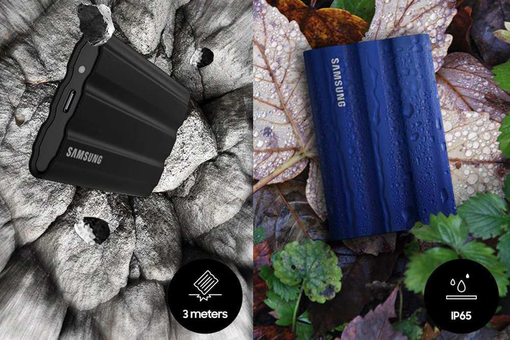 삼성 T7 실드(Shield)는 3미터 낙하 충격에 견딜 수 있고 IP67 등급이 방수 방진 기능을 지원합니다. 기본적으로 SSD의 내구성이 좋은 편인데 더욱 강화한 것으로 보입니다. 그래서 야외에서 활동이 많은 사진작가에게 유용할 것으로 예상합니다.