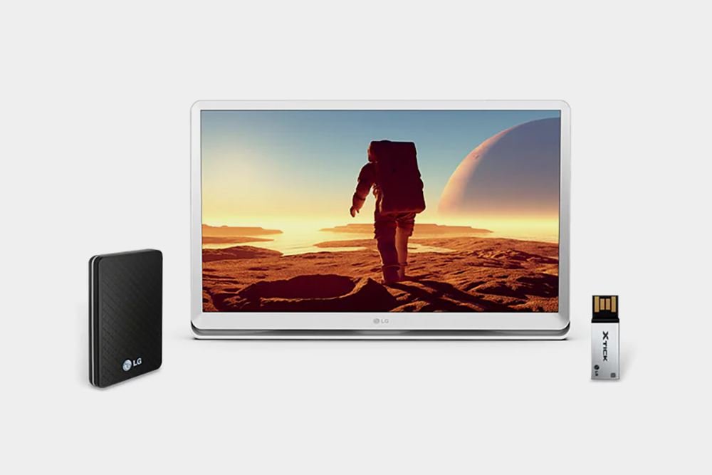 LG 룸앤TV 27TQ600SW에는 USB 포트가 탑재되었고 영상이나 음악 그리고 이미지가 저장된 외장 하드나 USB를 연결해서 재생을 할 수 있습니다. 편리한 기능이기는 하지만 실제로 많이 활용되지는 않습니다.