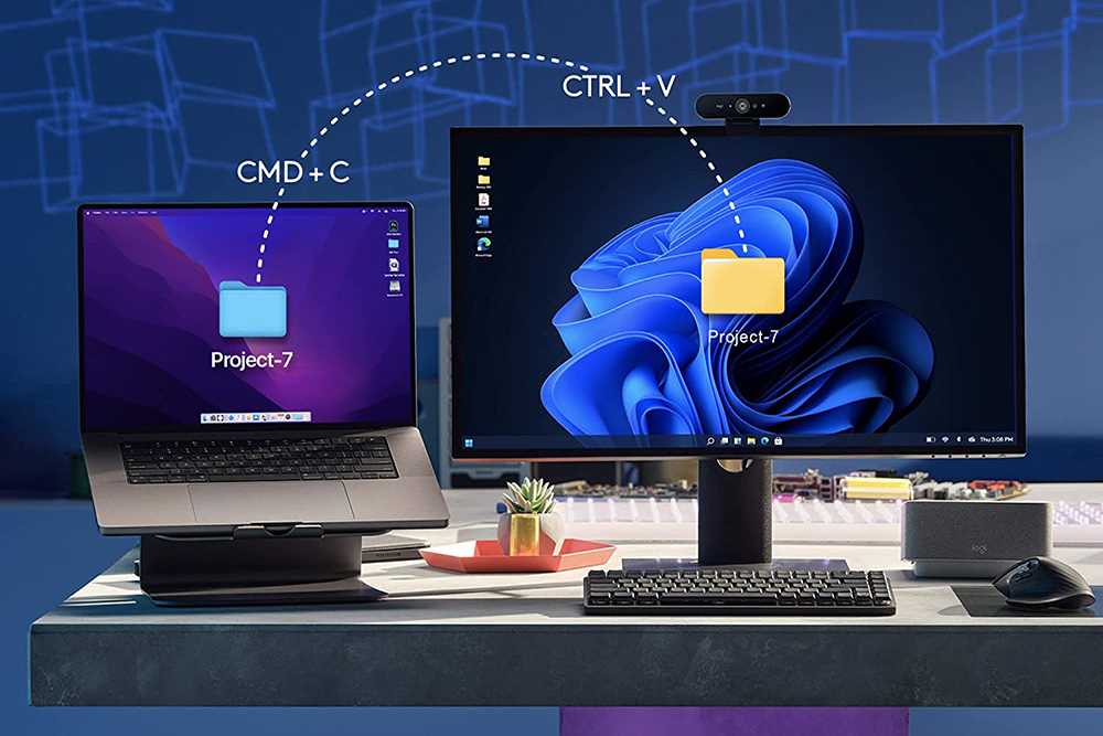 그리고 로지텍 FLOW 기술을 지원해서 최대 3대의 컴퓨터를 넘나들며 작업을 할 수 있습니다. 데스크톱PC와 노트북을 동시에 활용하는 분들에게 유용한 기능 중의 하나라고 할 수 있습니다.