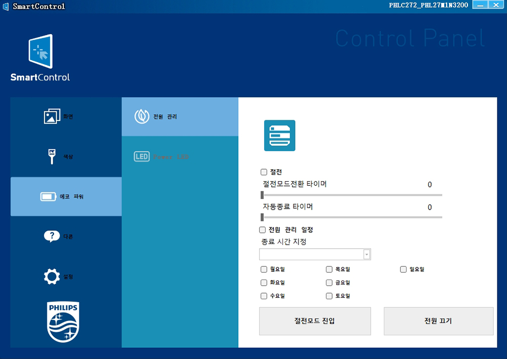 필립스 27M1N3200Z 게이밍 모니터는 스마트 컨트롤(SmartControl)이라는 전용 소프트웨어를 이용해서 OSD 버튼을 누르지 않고도 마우스를 이용해서 각종 설정을 변경할 수 있습니다. 상당히 편리한 기능 중의 하나라고 할 수 있습니다.