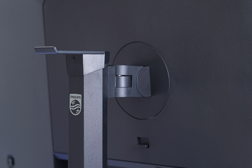필립스 27M1N3200Z 게이밍 모니터의 스탠드를 자세하게 살펴보면 헤드폰 걸이가 위쪽에 배치된 것을 확인할 수 있습니다. 필요에 따라서 활용해주는 것이 좋을 것 같습니다.