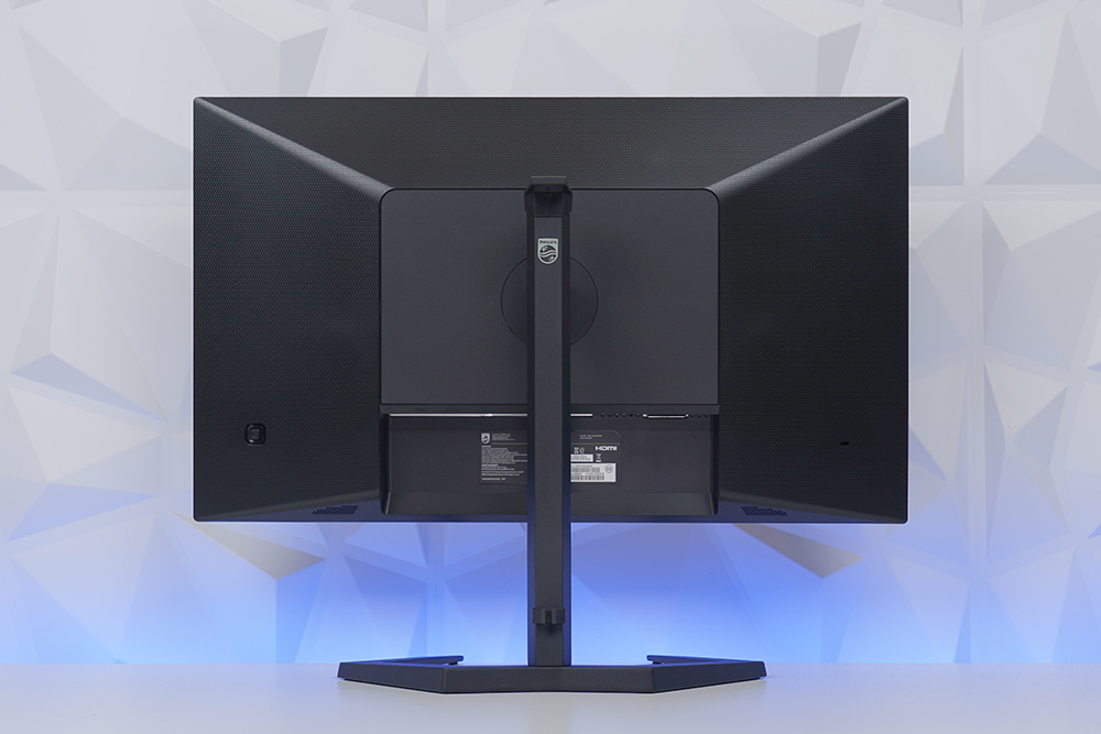 필립스 27M1N3200Z 게이밍 모니터의 뒷면은 깔끔한 스타일로 디자인되었습니다. 그리고 오른쪽에는 공개된 장소에 설치할 때 유용한 켄싱턴(Kensington) 도난 방지 잠금 장치가 배치되어 있습니다.