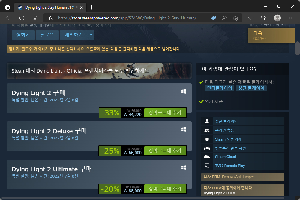 다잉 라이트 2 스테이 휴먼(Dying Light 2 Stay Human)은 테크랜드에서 개발한 1인칭 오픈월드 액션 서바이벌 게임입니다. 상당히 재미있다는 평가를 받고 있습니다. 가격은 44,220원이고 디럭스와 얼티밋 버전이 준비되어 있습니다.