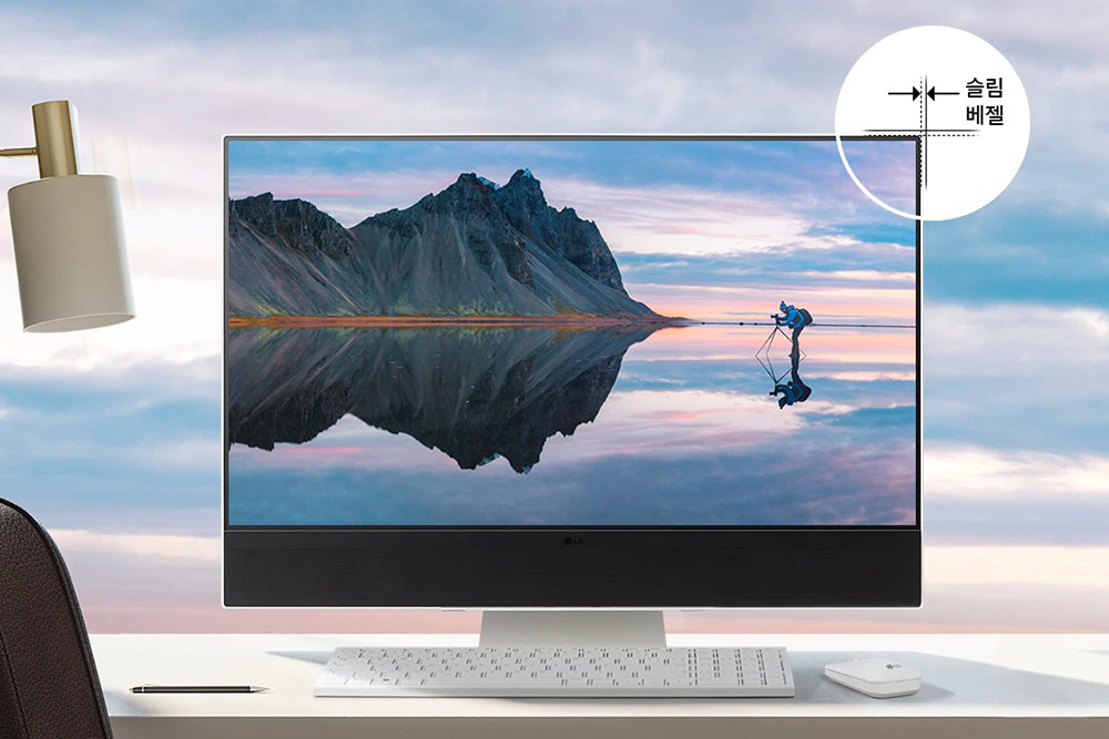 LG 일체형 PC 27V70Q(27V70Q-GA56K)에는 27인치 QHD(2560 x 1440) 해상도의 디스플레이가 탑재되었는데요. 베젤이 슬림한 편이어서 콘텐츠에 더욱 몰입할 수 있는 것은 물론이고 제품 자체의 크기도 상대적으로 콤팩트한 느낌을 주는 편입니다.