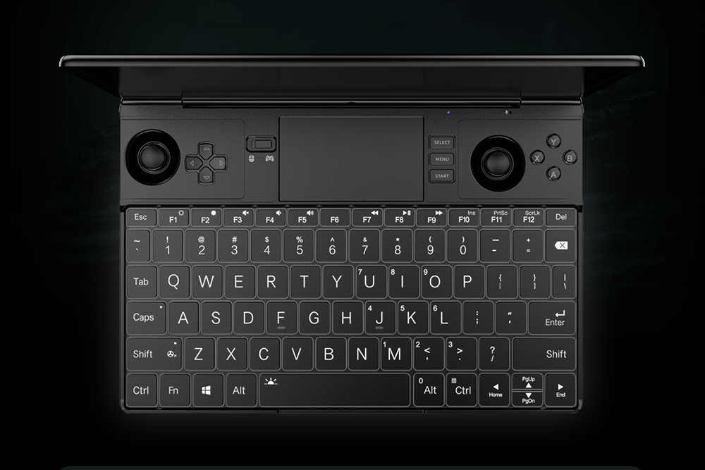 GPD WIN Max 2에는 백라이트 키보드가 탑재되었습니다. 배열이 타이핑을 하는데 크게 편리할 것 같지는 않습니다. 그리고 위쪽에 터치패드와 양쪽에 조이스틱이 배치되어 있어서 편리하게 게임을 플레이할 수 있도록 도와주는 역할을 합니다. 그런데 크기 때문에 그립감이 좋을지는 약간의 의문입니다.