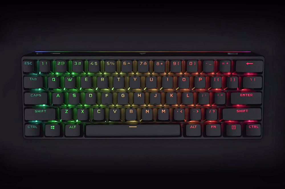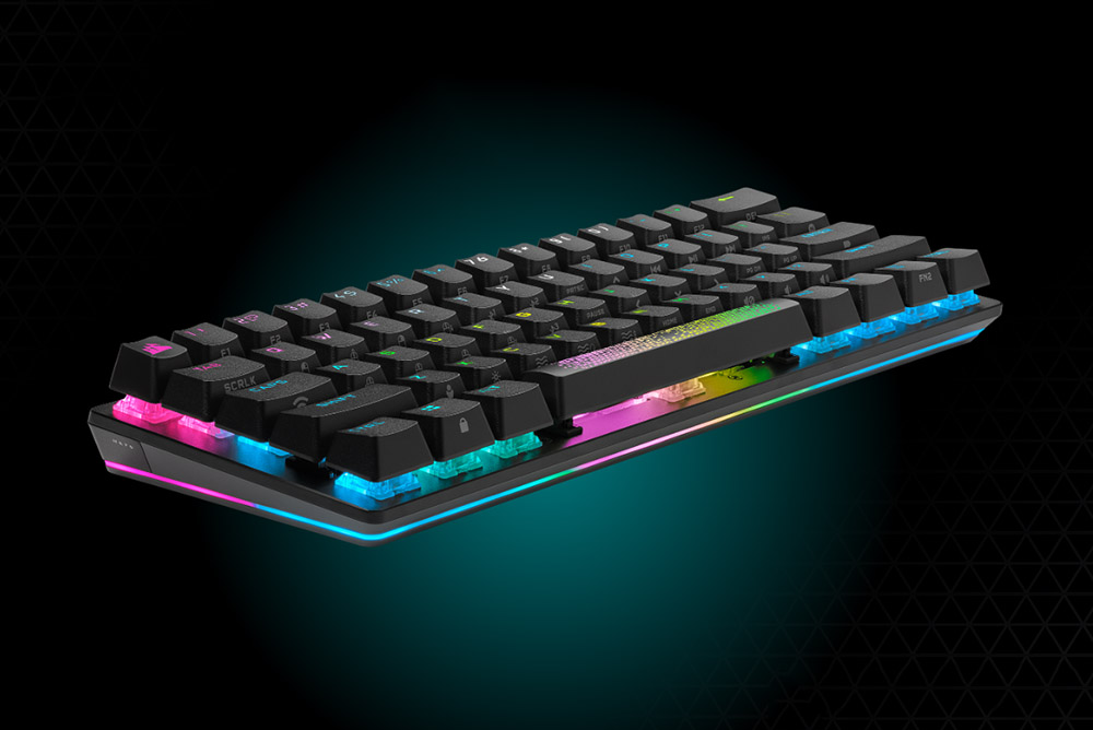 커세어 K70 프로 미니는 60% 배열로 제작되었습니다. 평소에 미니 키보드를 좋아하는 분들에게는 익숙한 레이아웃이라고 할 수 있습니다. 크기가 콤팩트해서 책상 위의 공간을 적게 차지한다는 장점이 있지만 F열과 방향키 등이 제거되었기 때문에 문서 작업 등의 용도로 활용하기에는 조금 불편하다는 단점도 가지고 있습니다. 그리고 취향에 따라서 커스터마이징이 가능한 키별 RGB 백라이트 조명이 탑재되어 있어서 야간에도 편리하게 게임을 플레이할 수 있습니다.