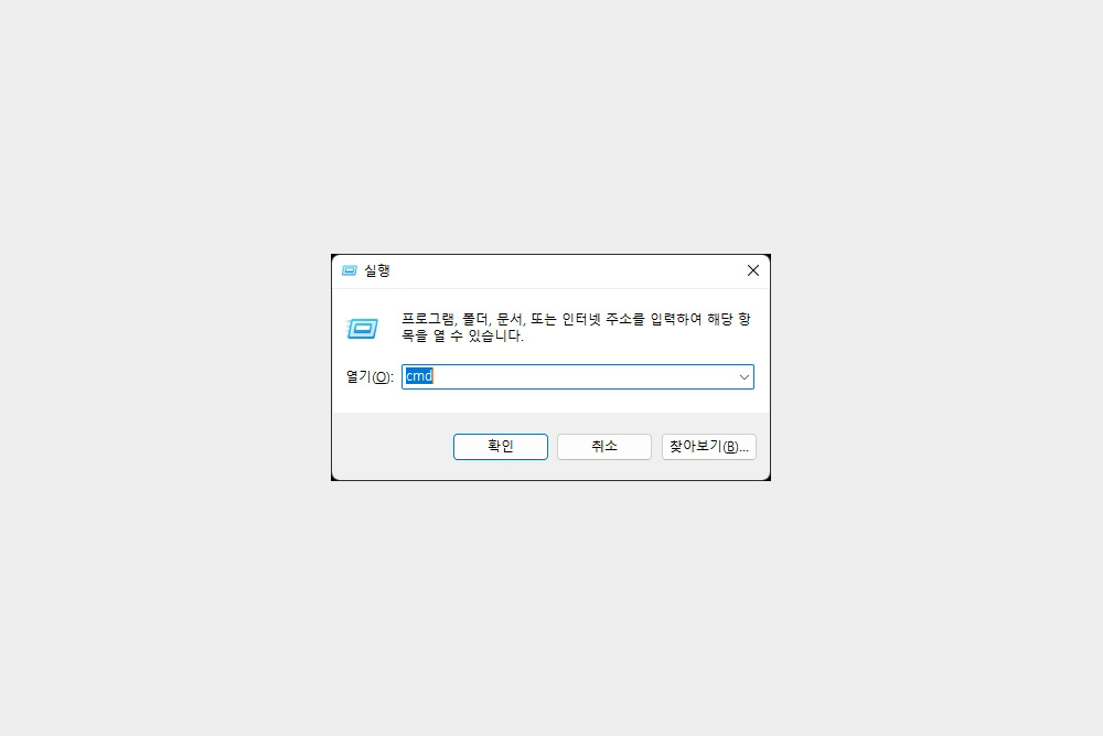 1. 윈도우 키 + R을 누른 후에 CMD 입력