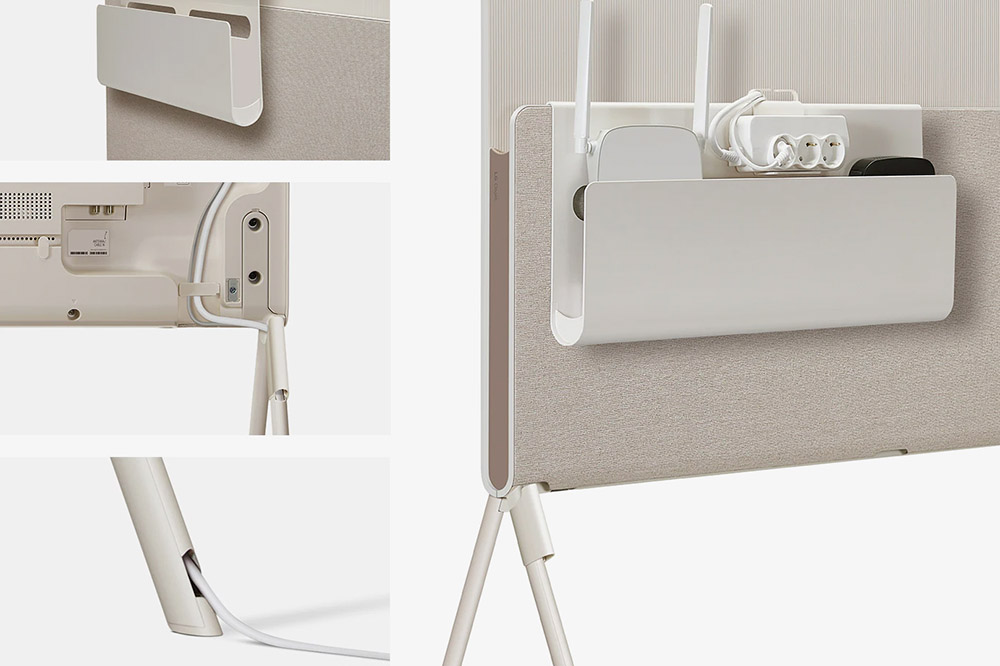 LG 올레드 오브제컬렉션 포제는 깔끔한 디자인을 위해서 탈부착 가능한 액세서리 수납함에 셋톱박스와 멀티탭 그리고 공유기들을 설치할 수 있도록 제작되었습니다. 사소한 부분이지만 공간을 조금 더 깔끔하게 정리할 수 있도록 도와주는 역할을 합니다.