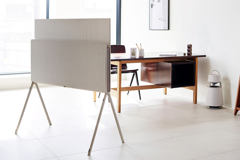 LG 올레드 오브제컬렉션 포제의 뒷면에는 여유 공간이 준비되어 있어서 책과 같은 제품들을 수납할 수 있습니다. 그 외에도 각종 사진을 부착해 놓을 수도 있다고 합니다. TV를 벽에 완전히 밀착해서 배치하기보다는 공간의 중간에 설치해서 사용하기를 원하는 분들에게 적합한 특징이라고 할 수 있습니다.