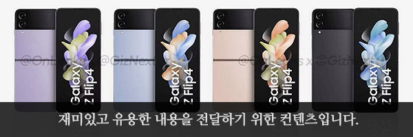 삼성전자에서는 갤럭시 Z 폴드와 플립 2가지의 폴더블 스마트폰을 출시하고 있습니다. 특히 플립 시리즈의 경우에는 접었을 때 크기가 상당히 작아져서 핸드백에 가볍게 수납할 수 있는 스마트폰을 찾는 분들에게 메리트가 있다는 평가를 받고 있습니다. 그리고 이번에 2022년형 삼성 갤럭시 Z 플립4의 공식 이미지가 유출되었습니다. 그래서 이번 포스팅에서 특징을 확인해 보도록 하겠습니다.