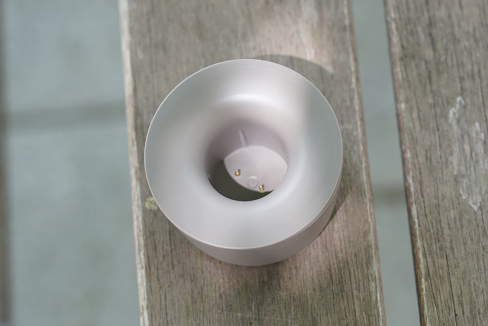 오난코리아 팬 프로 3세대 핸디형 선풍기은 전용 크래들을 이용해서 스탠드 형태로 활용할 수 있습니다. 그리고 내부에 충전을 위한 2개의 핀이 준비되어 있습니다. 참고로 무선 충전 기능이 아니고 핀을 이용한 유선 충전 기능입니다.