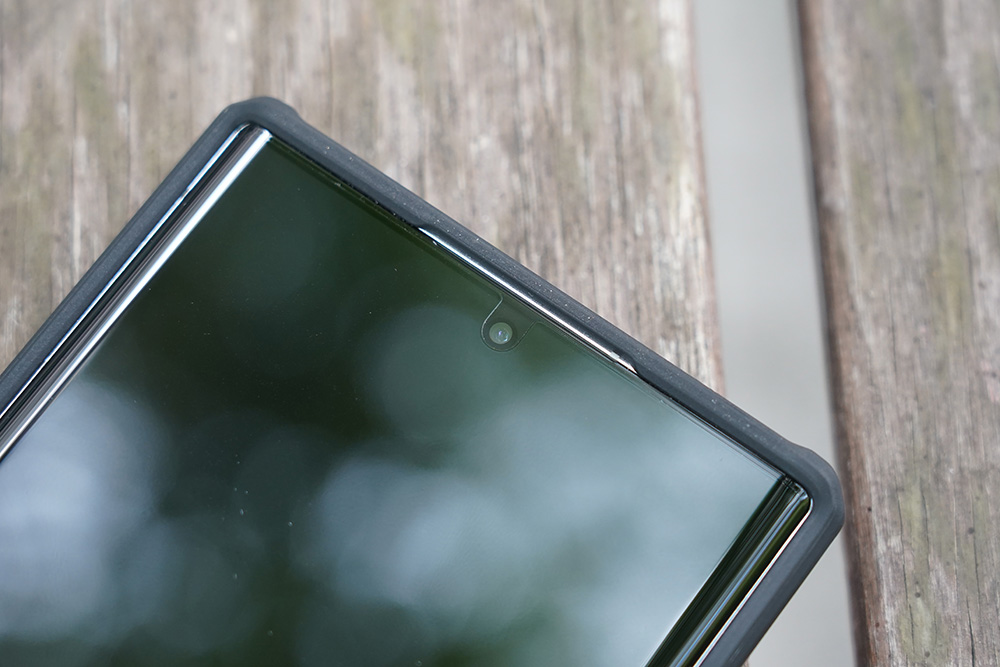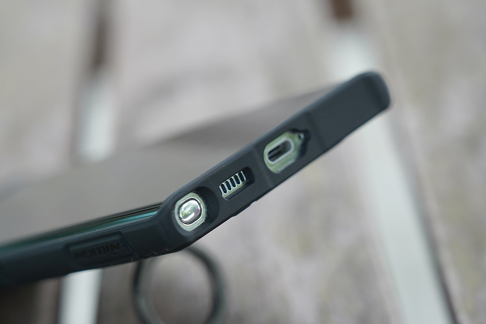 상단의 스피커 부분은 통화를 원활하게 할 수 있도록 약간 홈이 있는 것을 확인할 수 있습니다. 그리고 국내의 유명한 회사의 제품들도 저 부분을 깔끔하게 처리하지 못하는 경우가 있습니다. 그런데 갤럭시 S22 울트라 닐킨 캠쉴드아머 케이스의 제단은 마감이 좋은 편이라고 생각되었습니다.