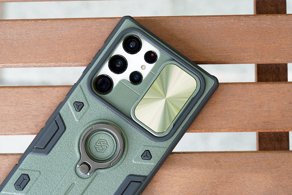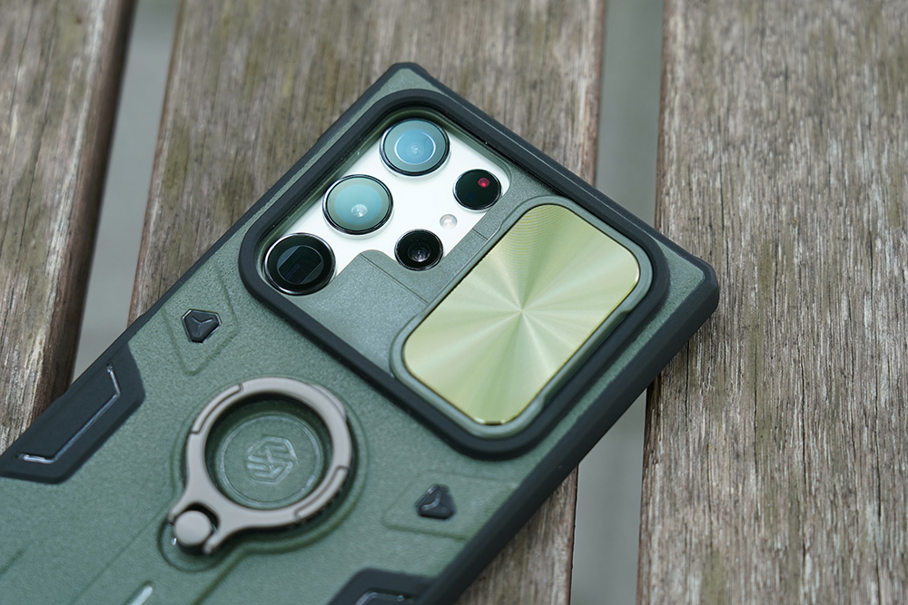 갤럭시 S22 울트라 닐킨 캠쉴드아머 케이스의 가장 재미있는 부분은 이름에서도 알 수 있듯이 캠쉴드가 장착되어 있다는 점입니다. 그래서 사용하지 않을 때는 물리적으로 차단할 수 있고 흠집이 생기지 않고도 보호할 수 있습니다.