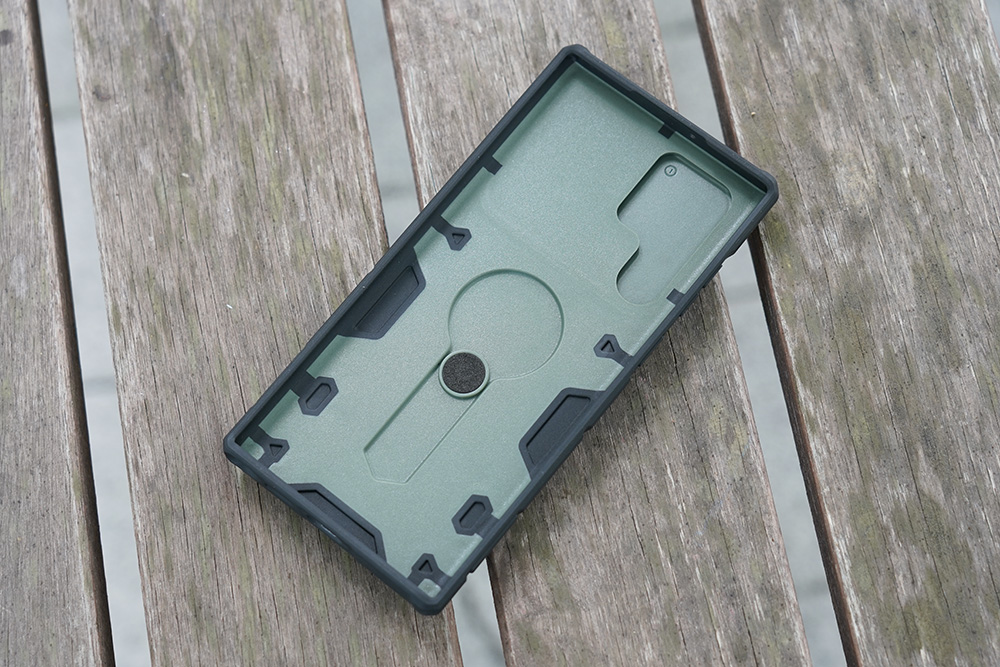 갤럭시 S22 울트라 닐킨 캠쉴드아머 케이스는 하드 PC와 소프트 TPU 2가지 소재로 제작되었습니다. 제법 단단한 느낌을 주는 편이고 완성도도 높은 편이라고 판단되었습니다.