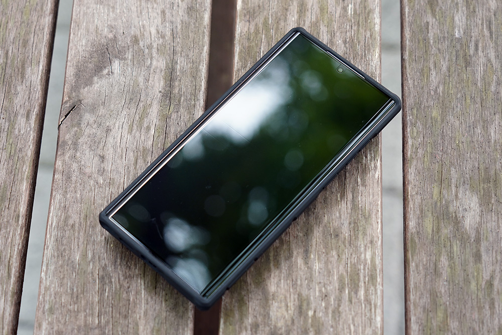 갤럭시 S22 울트라 닐킨 캠쉴드아머 케이스의 전면을 살펴보면 옆쪽이 조금 깊은 편이라는 것을 알 수 있습니다. 물론 위아래가 2mm 정도 높게 설계되어서 뒤집어 놓아도 화면이 직접적으로 바닥에 닿지는 않지만 떨어트린다면 손상을 입을 수도 있습니다. 주의하시길 바랍니다.
