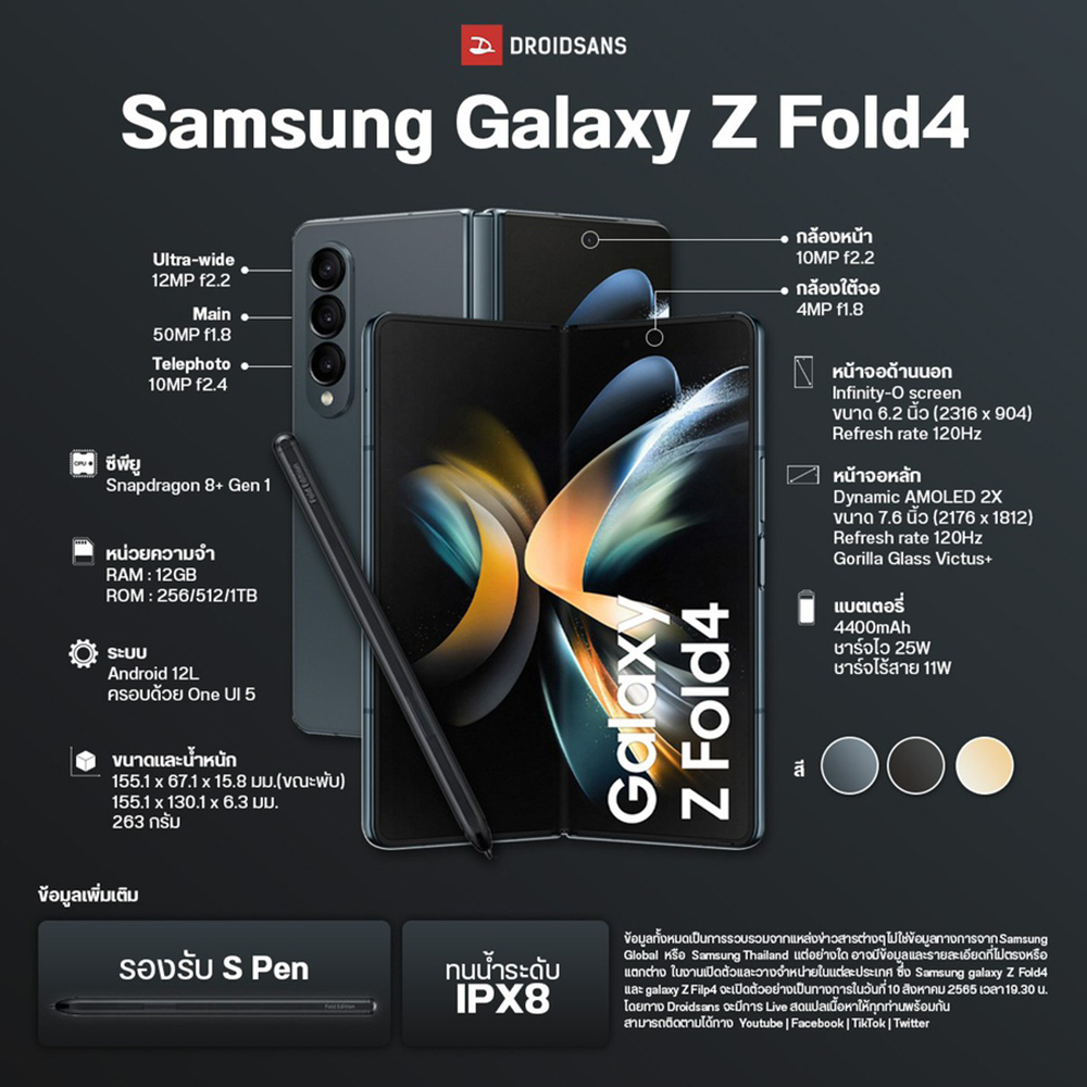 삼성 갤럭시Z 폴드4의 스펙을 확인해 보면 퀄컴 스냅드래곤 8+ Gen 1 SM8475 프로세서와 12GB 램 그리고 256GB/512GB/1TB 내장 메모리를 탑재할 것으로 예상됩니다. 그리고 CPU의 클럭은 플립4보다 높다고 합니다. 그리고 무게는 263g으로 폴드3가 271g이었던 것과 비교하면 8g 정도 줄어들었습니다. 듀얼 힌지가 슬림 싱글 힌지로 변경되어서 무게가 감소한 것으로 보입니다.