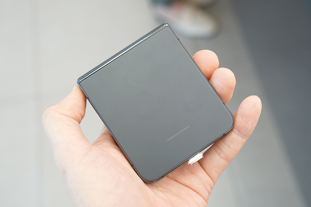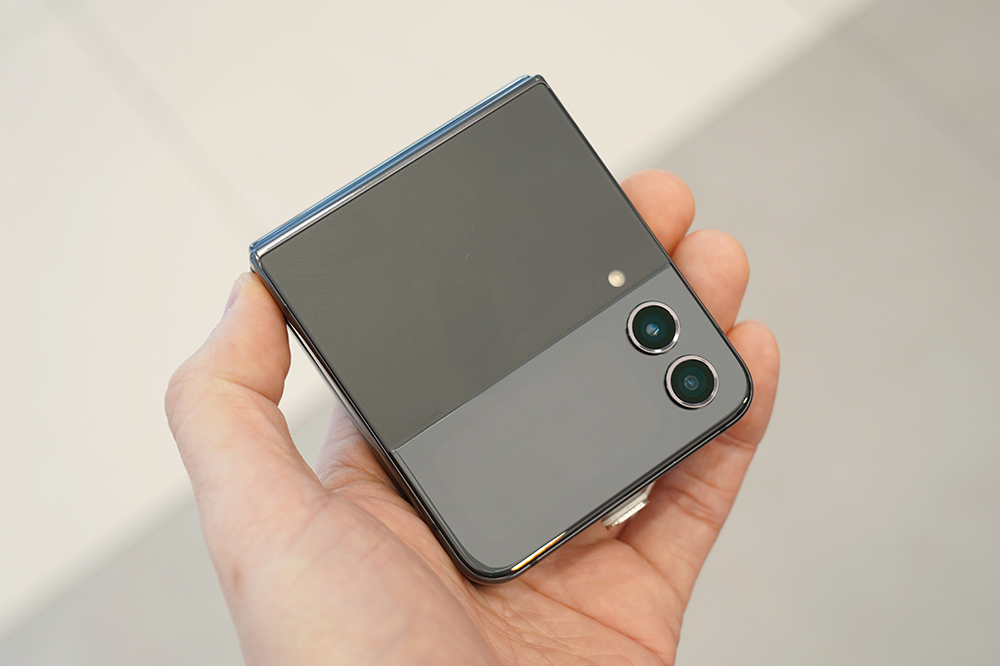 갤럭시 Z 플립4의 전면과 후면 패널은 매트한 느낌의 무광으로 마무리되었습니다. (카메라 부분은 유광 블랙) 그리고 접었을 때 크기가 71.9 x 84.9 x 17.1mm이고 무게도 187g으로 가벼운 편이어서 부담없이 휴대할 수 있을 것으로 예상합니다.