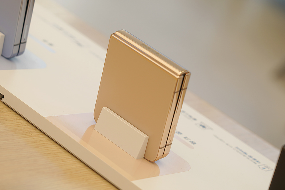 핑크 골드 색상의 갤럭시 Z 플립4는 은은하게 고급스러운 느낌을 주는 편입니다. 물론 골드 컬러가 약간 올드한 느낌을 준다고 생각하실 수 있지만 톤이 차분하게 정리되어 있어서 그렇게 튄다는 느낌을 받지는 못했습니다.