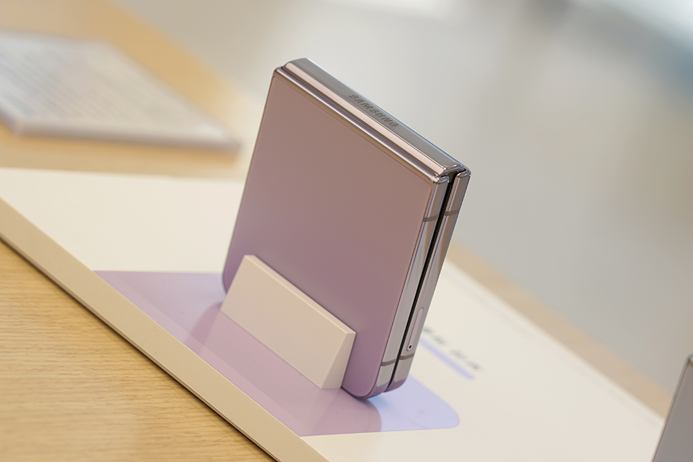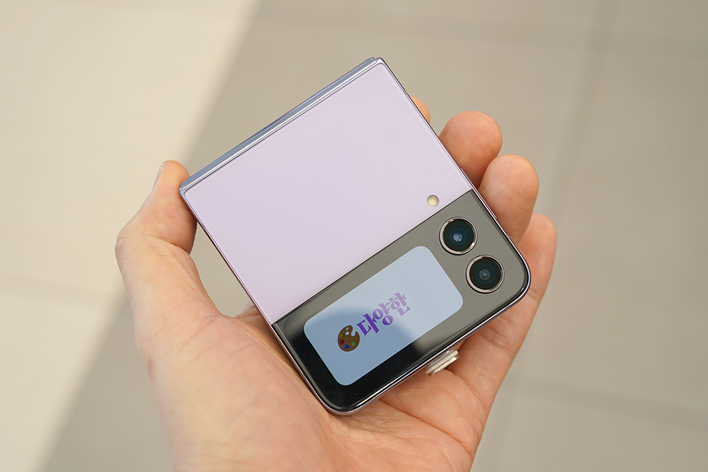갤럭시 Z 플립4의 시그니처 컬러라고 할 수 있는 색상은 보라 퍼플이라고 할 수 있습니다. 이번 갤럭시 언팩 2022에 BTS가 등장한 것처럼 어느 정도의 연관성이 있는 색상이라고 할 수 있습니다. 전체적으로 톤이 옅은 느낌이어서 크게 부담스럽지는 않지만 개성이 조금은 약한 것 같다는 느낌을 받았습니다.