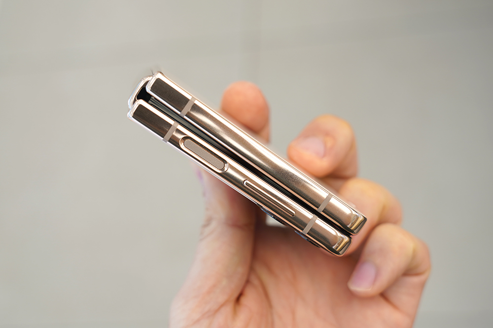 핑크 골드 색상의 갤럭시 Z 플립4는 은은하게 고급스러운 느낌을 주는 편입니다. 물론 골드 컬러가 약간 올드한 느낌을 준다고 생각하실 수 있지만 톤이 차분하게 정리되어 있어서 그렇게 튄다는 느낌을 받지는 못했습니다.