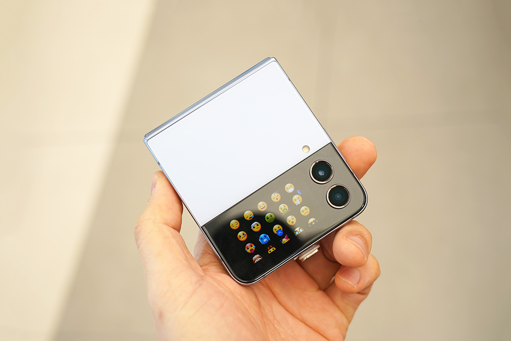 갤럭시 Z 플립4의 전면과 후면 패널은 매트한 느낌의 무광으로 마무리되었습니다. (카메라 부분은 유광 블랙) 그리고 접었을 때 크기가 71.9 x 84.9 x 17.1mm이고 무게도 187g으로 가벼운 편이어서 부담없이 휴대할 수 있을 것으로 예상합니다.