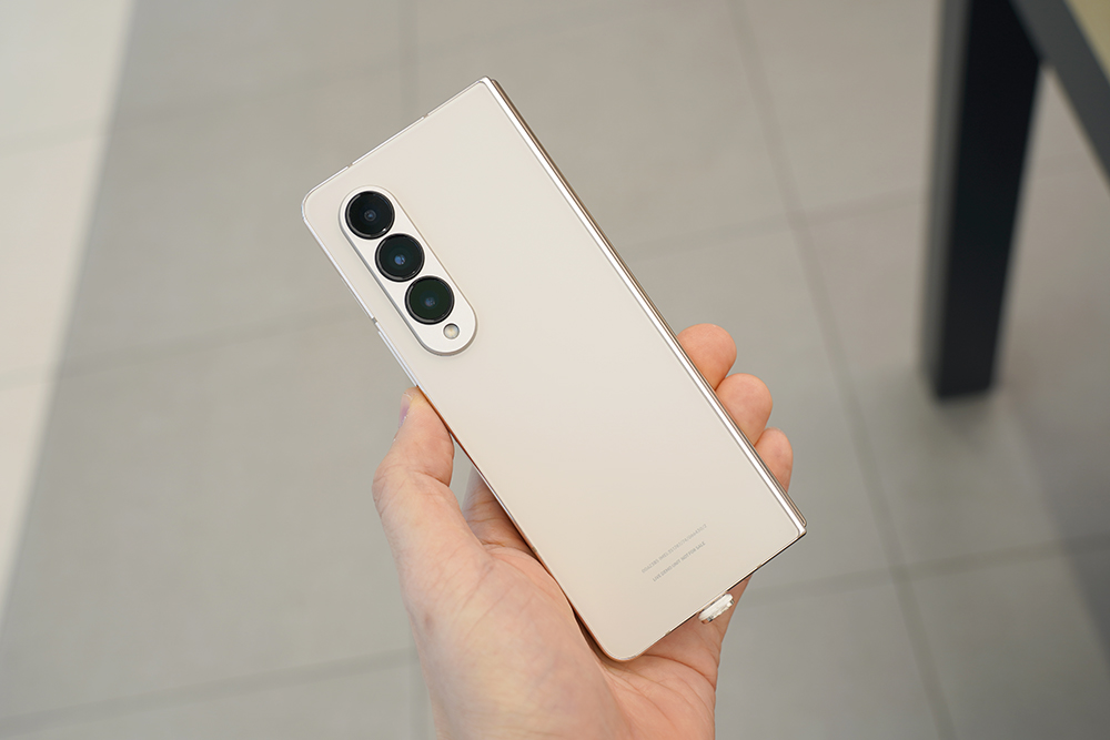 갤럭시 Z 폴드4의 베이지 색상은 은근히 고급스러운 느낌을 주는 편입니다. 특히 옅은 골드 컬러의 프레임과 매칭이 좋은 편이라고 생각되었습니다. 그래서 여성분들이 선택하면 좋을 것 같습니다.