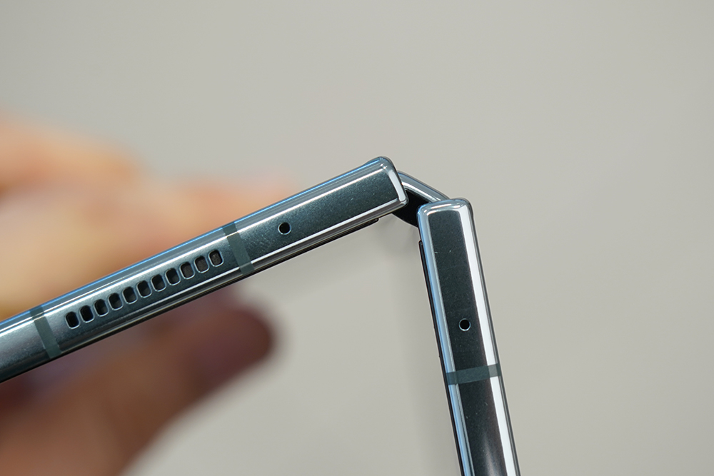 삼성 갤럭시Z 폴드4의 루머에서는 강화유리 기반의 Ultra Thin Glass (UTG)가 개선되어서 주름 역시도 조금 더 눈에 덜 거슬릴 것이라는 내용이 있었습니다. 그런데 실제로 살펴보면 폴드3와 크게 차이가 없는 수준이라고 생각되었습니다. 물론 정밀하게 측정한다면 다르게 느낄 수 있습니다.