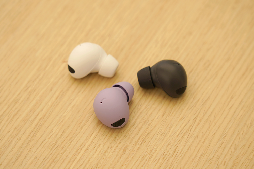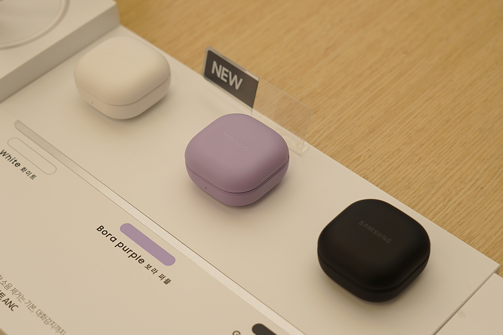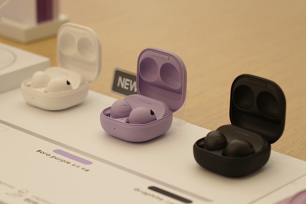 갤럭시 버즈2 프로의 색상은 그라파이트와 보라 퍼플 그리고 화이트 3가지로 출시되었습니다. 그리고 케이스는 버즈 라이브부터 버즈 프로, 버즈2까지 모두 같은 크기로 제작되었기 때문에 케이스가 호환이 된다는 장점이 있습니다.