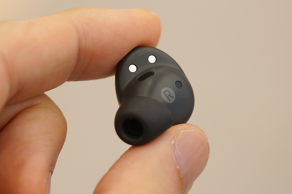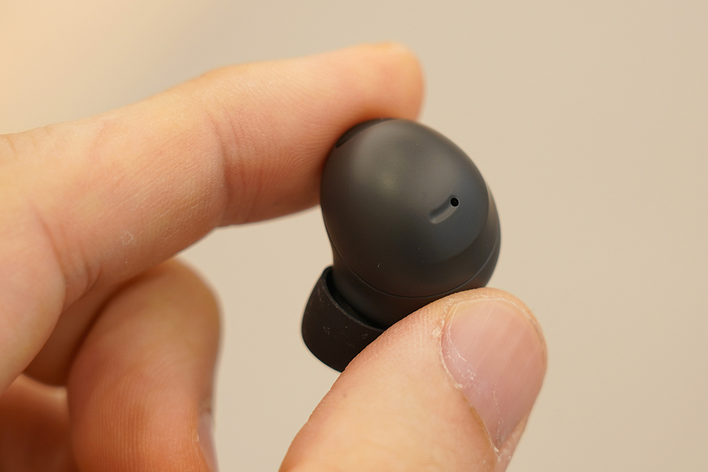 갤럭시 버즈2 프로의 외부 마감은 유광의 버즈 프로와는 다르게 버즈2와 같은 형태인 무광으로 제작되었습니다. 저는 조금 더 깔끔하다는 느낌을 받았습니다. 그리고 그라파이트 색상의 경우에는 일상적으로 사용하기에 부담이 없는 스타일이라고 생각되엇습니다.