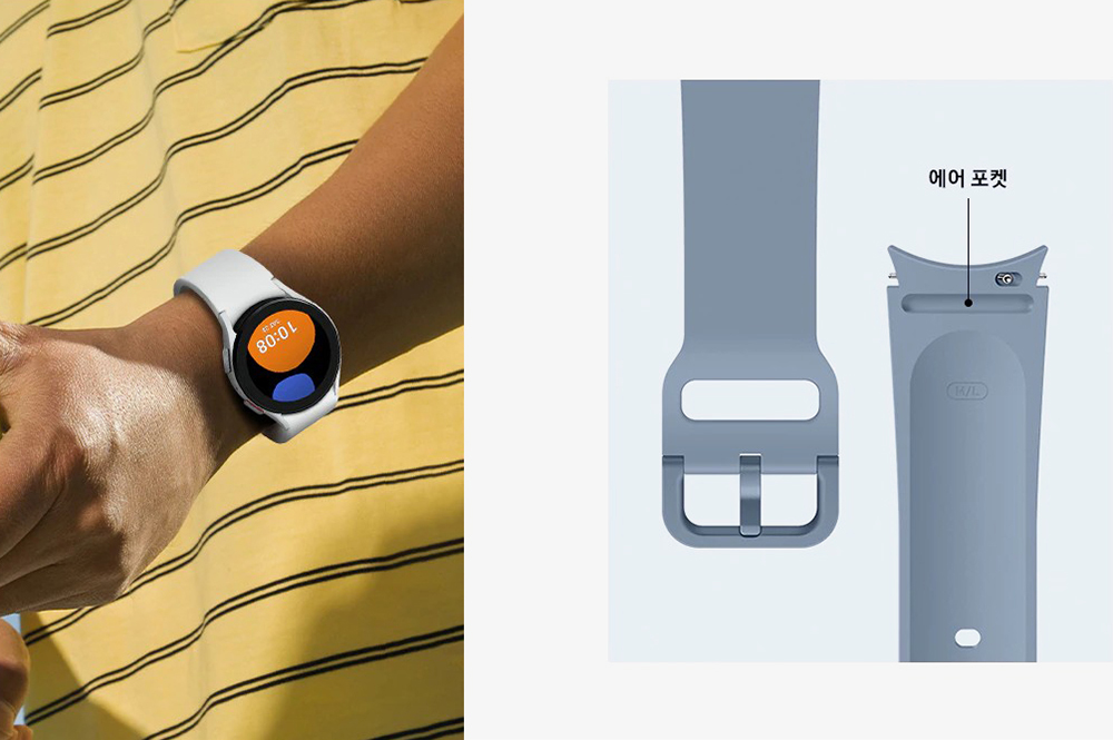 갤럭시 워치5 시리즈 스포츠 스트랩에는 에어 포켓이 포함되어 있어서 조금 더 각도 조절이 쉬운 특징이 있습니다. 그리고 색상은 사파이어, 화이트, 퍼플, 핑크 골드, 그라파이트 5가지 중에서 선택할 수 있고 가격은 39,600(삼성닷컴 회원가 38,400원)입니다.