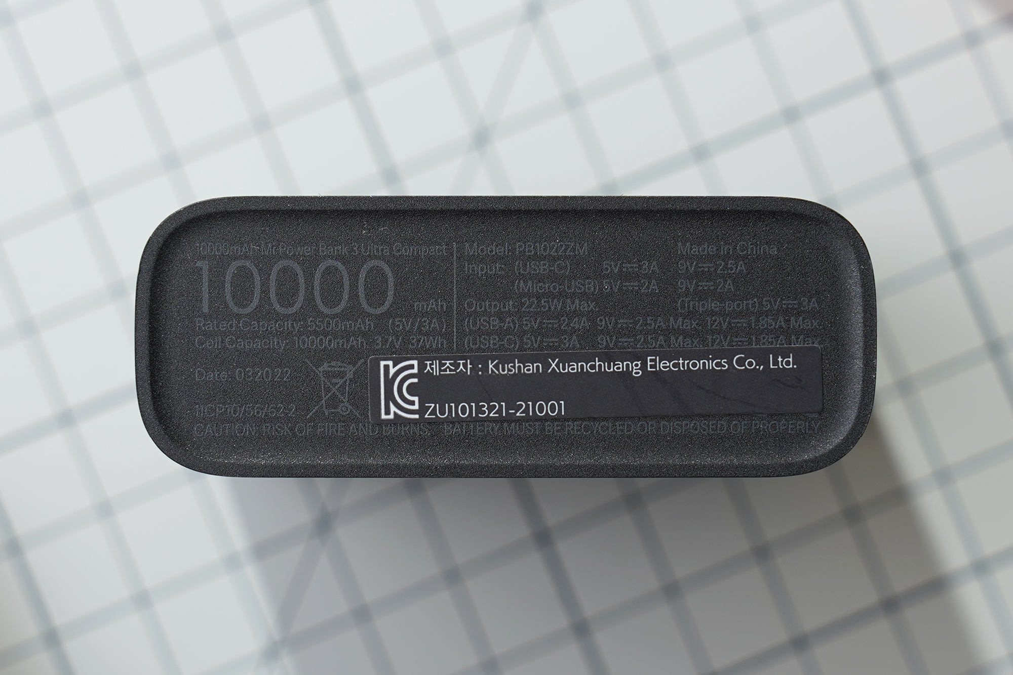 샤오미 6세대 보조배터리 PB1022ZM은 PC + ABS 소재로 제작되었습니다. 일반적으로 많이 활용되는 알루미늄이 아니라서 다른 제품과 같이 가방에 넣었을 때 흠집이 조금은 적게 생길 것으로 예상합니다. 그래도 이동할 때는 어느 정도 분리를 해야 할 것 같습니다.