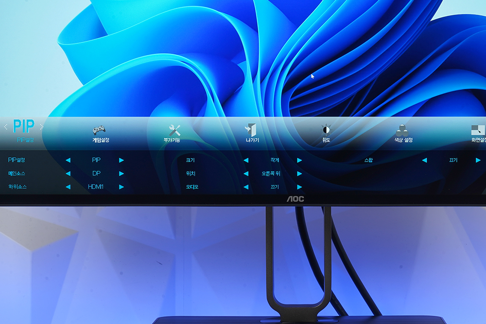 PIP 설정에서는 PIP나 PBP 기능을 사용할 수 있습니다. 메인소스와 하위소스도 변경할 수 있고 크기와 위치도 자신의 취향에 맞게 설정할 수 있습니다. 그 외에도 메인과 하위 소스를 전환할 수 있는 스왑 기능도 지원합니다.
