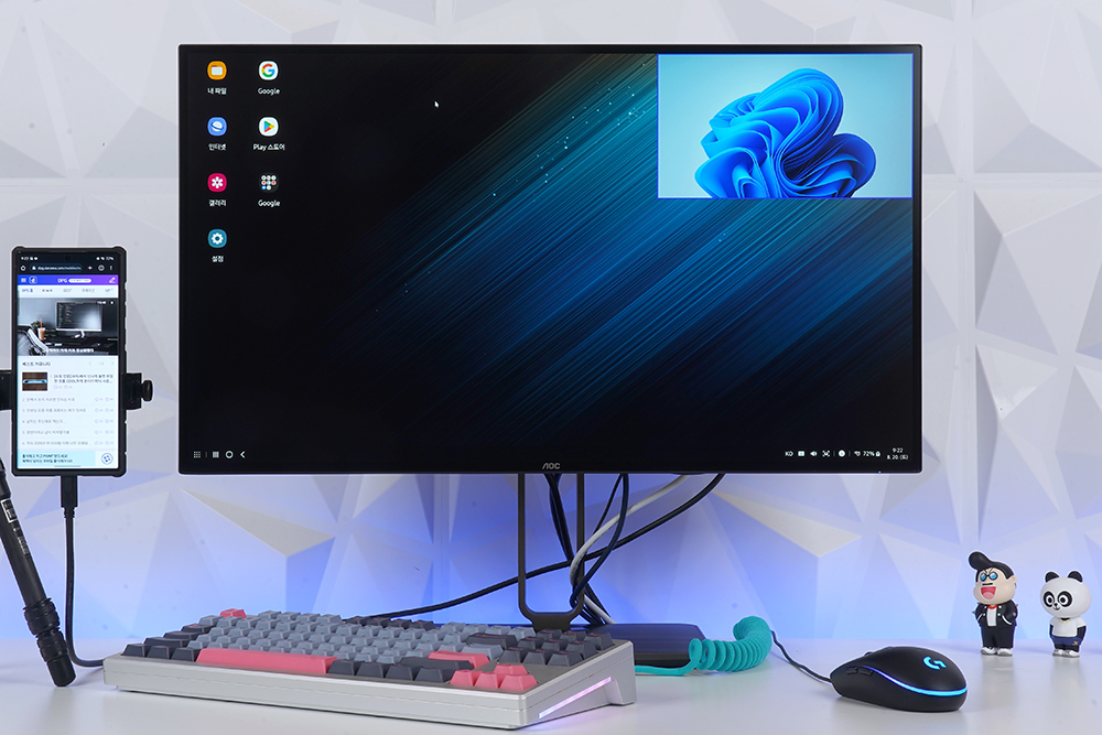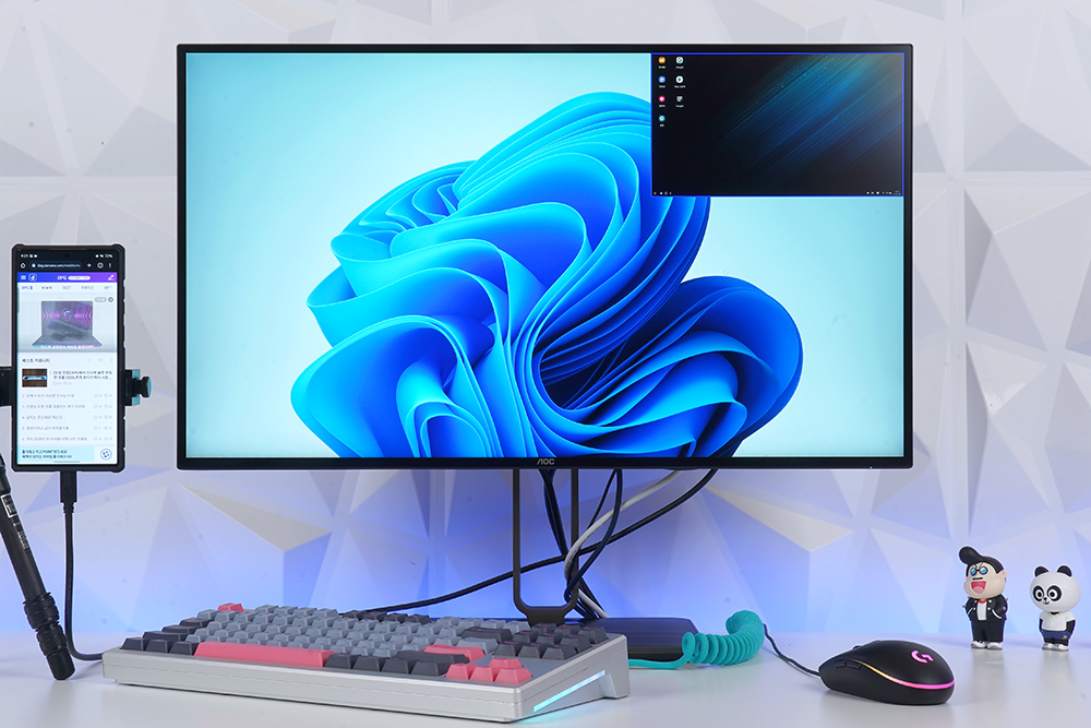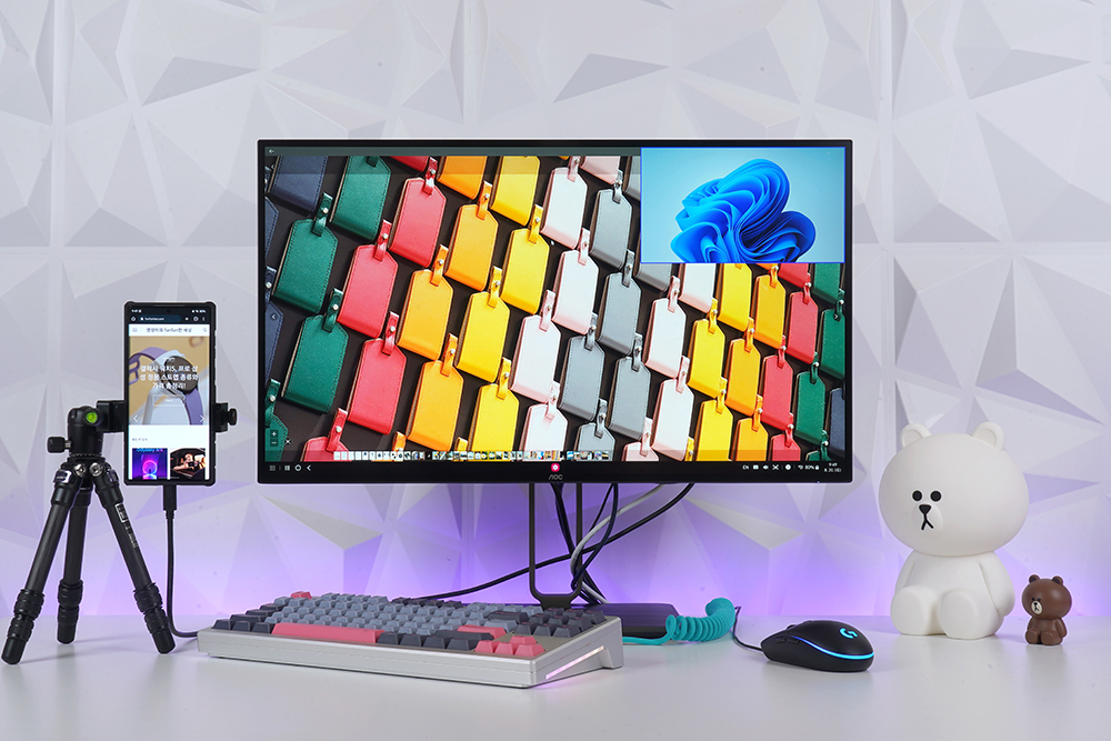 알파스캔 AOC U27U2S 모니터에는 멀티뷰 PIP와 PBP 기능이 탑재되었습니다. 그래서 데스크톱 PC나 노트북 그리고 스마트폰이나 셋톱박스, 콘솔 게임기 등을 동시에 연결하고 한 화면에서 관리할 수 있습니다.